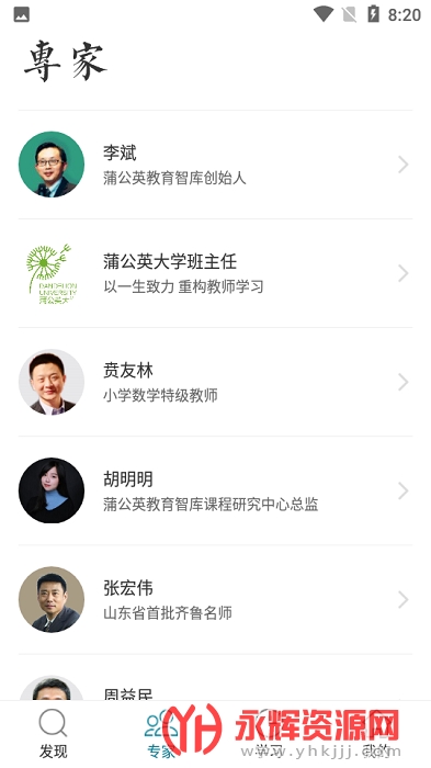 教育人可通过专家主页认识专家、了解专家参与的课程、会议以及相关书籍杂志等。