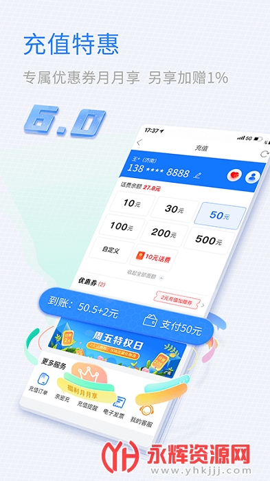 随时满足您的移动业务查询和办理需求,独享的话费充值优惠