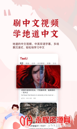 taoli是一款以中文知识学习为主的教育软件,很多朋友都是很感兴趣的,各类中文视频免费分享,跟着去进行学习是比较有趣的,效率也很高,系统还带有强大的词汇查询功能。