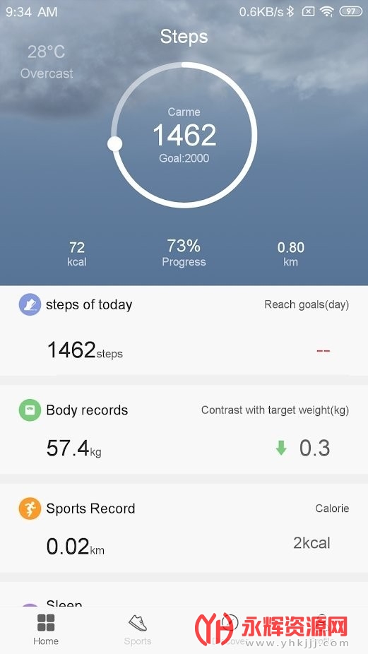 记录每天的步数,计算热量的日常消费,移动距离,时间。