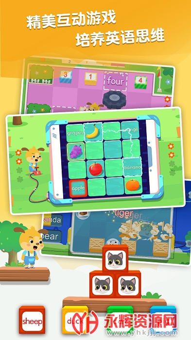 动画视频与游戏为形式,引导孩子在玩中学,玩中培养英语思维。