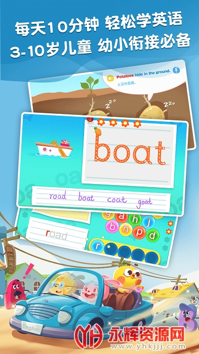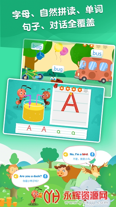 纯正美式童声发音,场景化教学,贴近儿童生活!快乐开启儿童英语启蒙之旅,轻松学习口语练习、字母书写、单词拼读。