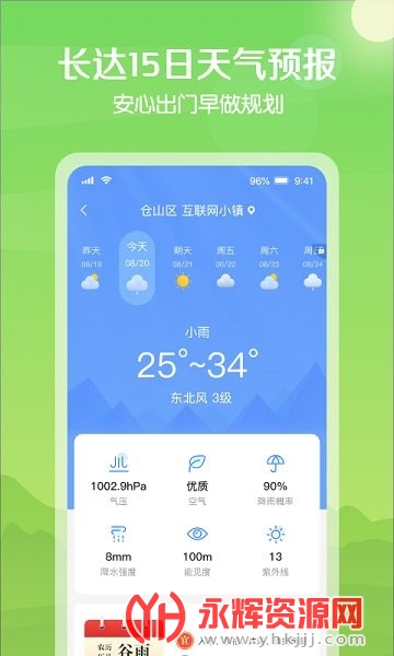 大雁天气app是一款非常不错的天气预报类软件,为用户提供了相当专业的天气预报服务,用户可以在上面了解到当天的天气状态也可以知晓最近的天气情况,为用户带来非常全面的天气服务,让用户可以在出行时做好准备,办事情时对天气也有个大致的了解,有需要的朋友欢迎来下载使用吧!