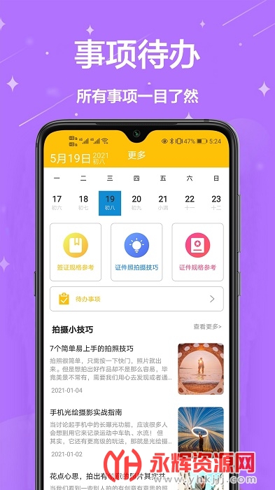 电子照片app是一款非常好用的证件照拍摄制作软件,这款软件的功能十分强大,支持各种类型、各种尺寸大小的证件照拍摄制作。并且还可以对拍好的照片进行各种美颜处理,还能够一键更换背景颜色,帮助大家轻松拍摄出最美的证件照!欢迎有需要的朋友们前来永辉资源网下载!