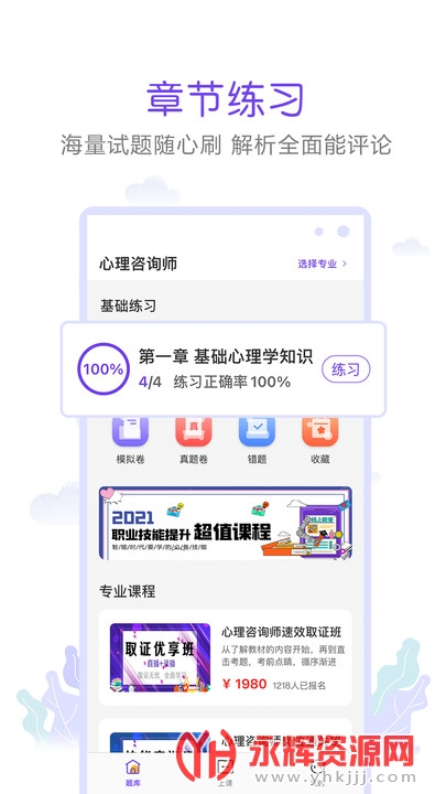 包含章节练习、模拟试题、考前冲刺、历年真题等海量题库。