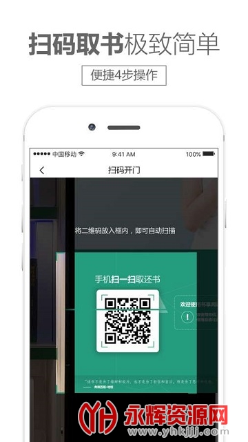 任意书柜任意还,书享智能来实现;知识源泉随处见,轻松扫码即实现;