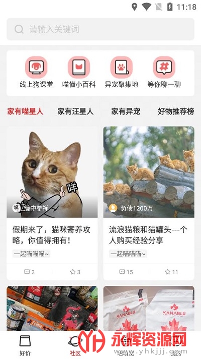 爱宠次元app是为喜欢宠物的宝贝们提供的交流平台,使用这款软件你可以了解不同宠物的习性以及学习许多小知识,还可以分享自己家主子的生活日常与其他人交流,有喜欢这款软件的朋友们可以来永辉资源网下载哦!