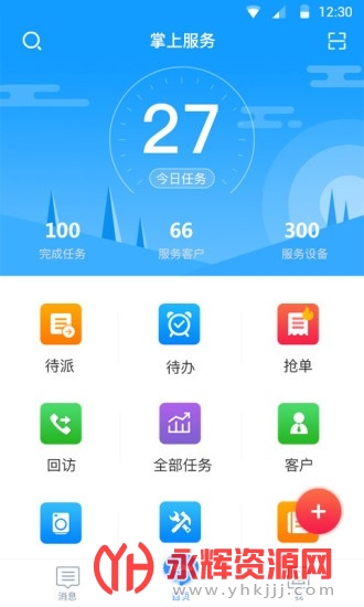多种多样的任务项目,有待办任务、待派发任务、客户管理以及在线回访等功能。