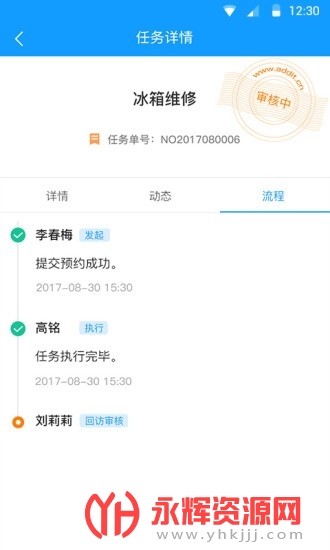 查看自己的任务审核状态,可以在任务详情里面直接查看流程中的状态。