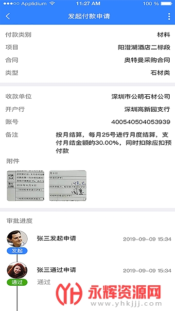 收款申请,轻松的就可以发起收款申请,通过审核之后就能够轻松的发起