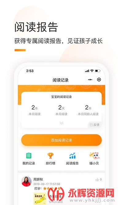 坚持做阅读记录,每月首日获得1份专属阅读报告,记录孩子成长,不错过每一次小小的成就。