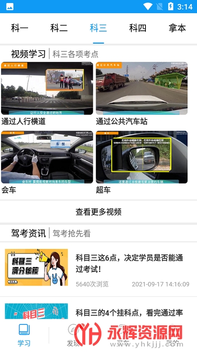 用户可在软件进行视频学习,了解驾考时会遇到的实际情况,提前做好准备。