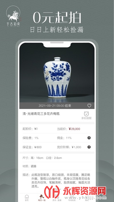 于古拍卖app是一款十分可靠的掌上拍卖平台,软件中有着超多高品质的商品都是可以0元起拍的,而且质量有所保障,有需要的朋友们可以来永辉资源网下载使用哦!