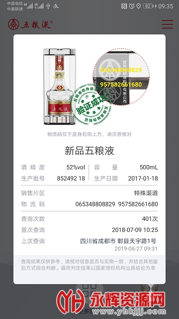 输入五粮液产品防伪标签上的刮刮码,即可迅速反馈产品真假