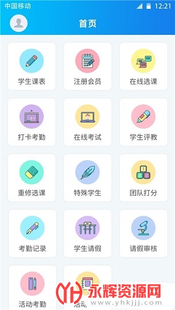 实现学生在线选课、在线考试、注册俱乐部、考勤打卡等功能。