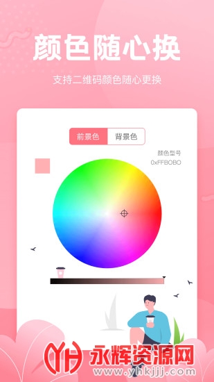 1.支持美化二维码。支持设置二维码的背景色和前景色,还支持在二维码中间添加Logo,支持修改二维码背景为一张图片。