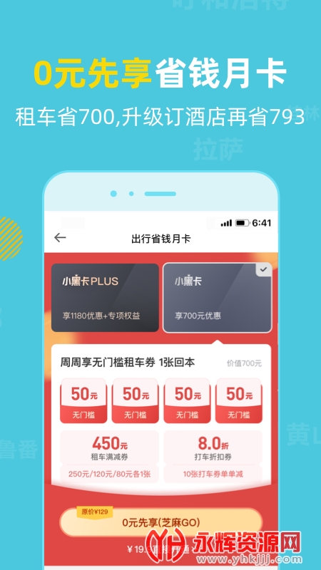 办理租车月卡,在探途租车租车的时候无需押金,还能领取无门槛租车优惠券。
