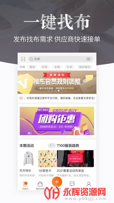 搜布app超10万家纺织面料供应商入驻,每日过万采购同时在线,纺织布料行业B2B领先者。供应商的生意好伙伴,采购的找布神器。