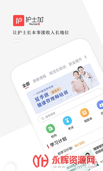 针对护理群体提供专业护理信息资讯、职业规划、考试辅导等信息化移动服务平台。护士加客户端功能包括: