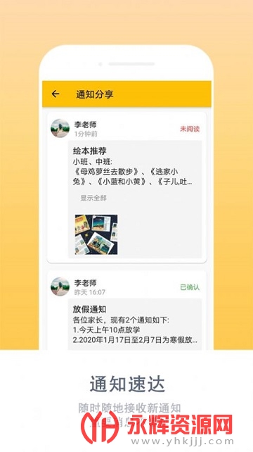 随时了解在园情况,接收幼儿园通知等 『用幼幼家园,和娃有话聊』