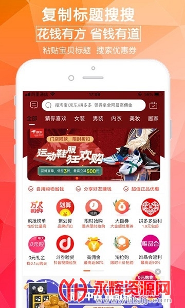品牌特卖:千余家知名品牌,服装、美妆、居家、母婴、食品、鞋包、数码电器任意返!