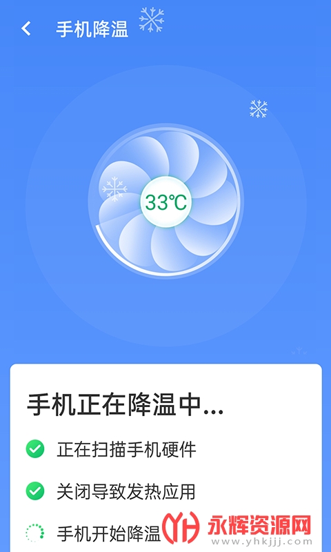 如果用户手机温度过高,统一加速清洁助手APP还可以帮助用户扫描手机硬件,关闭可能导致发热的应用。