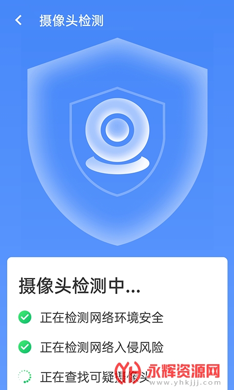 在摄像头检测功能中,可以帮助用户检测网络环境安全,检测是否存在网络入侵风险,帮助用户扫描清理周围可疑摄像头。