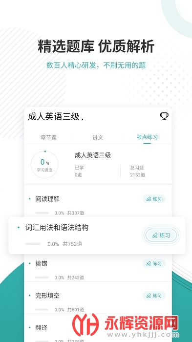 学位英语优题库有试题视频解析、章节强化训练、高频考点、历年真题。
