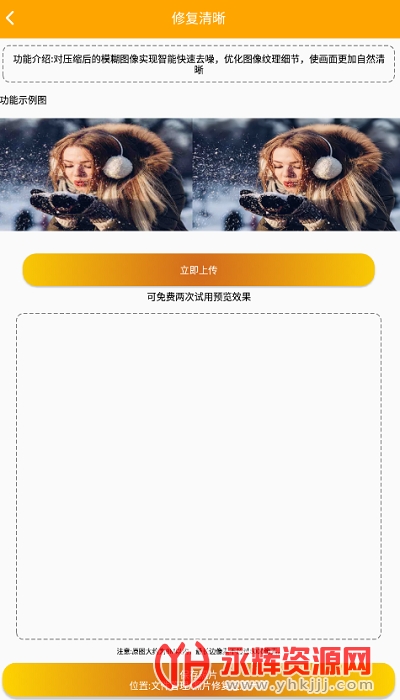 照片修复还原大师app是一款十分好用的老旧照片修复软件,使用这款软件可以将手机中的老照片进行上色以及旧照片进行修复,非常的方便,有需要的朋友们可以来永辉资源网下载使用哦!