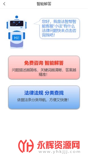 用户可以通过“智能解答”功能,在线与智能客服咨询相关的法律问题。