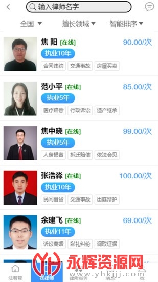法智帮法律咨询服务平台是一款非常专业的掌上法律咨询服务手机软件,软件里面拥有非常多拥有多年律师经验的从业者在线帮助用户解答各个法律相关的问题,实时都可以预约律师为你进行服务,帮助你解决诸多的法律问题,特别的方便实用,有需要的朋友就快来永辉下载体验吧!