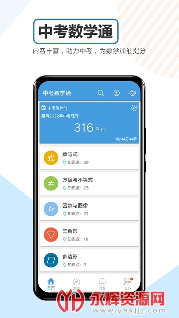 简单:简单的使用玩法、让你更好的进行一个中考数学的知识学习;