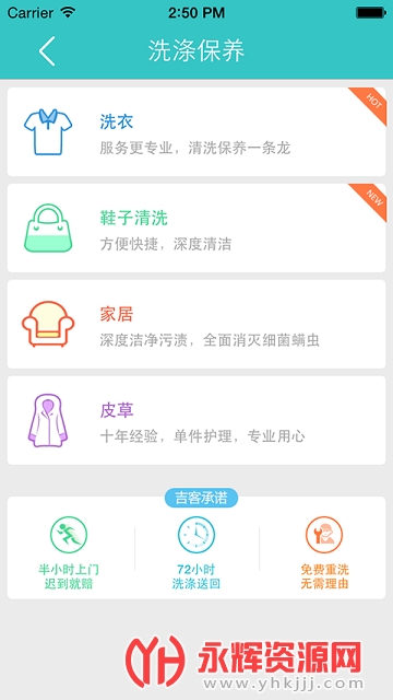 洗涤保养,进行洗衣、鞋子清洗、皮草等功能模块随地使用啦;