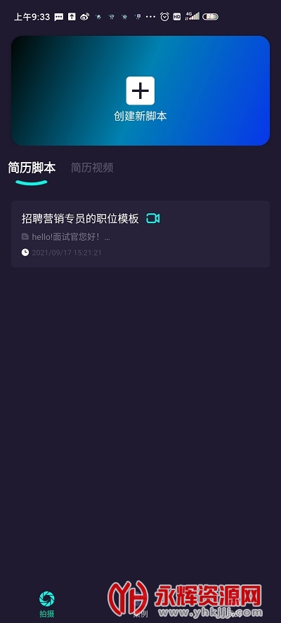 拍个简历app是一款超级好用的视频简历制作软件,软件中有着十分详细的制作教程提供给大家,让大家制作简历更加轻松,有需要的朋友们可以来永辉资源网下载使用哦!