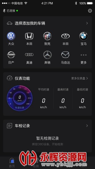 目前支持大众、本田、别克、宝马、奔驰等车辆品牌,拥有仪表功能;