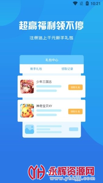 在本软件中用户还可以下载游戏领取福利,在游戏中可以让自己的角色成长的更快。