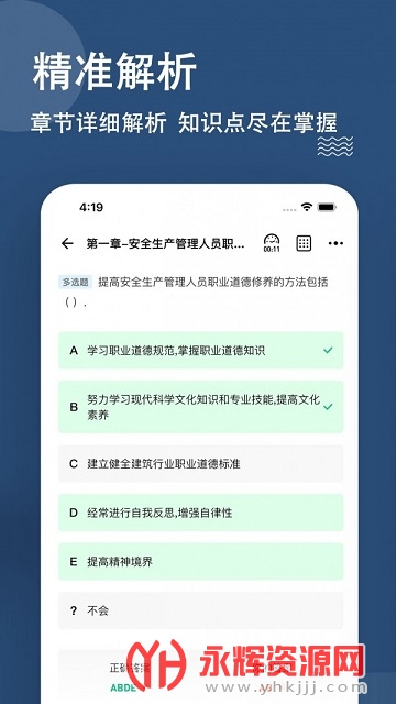 有模拟考场、历年真题练习、每日一练、快速练习、考点练习、考试押题、做题记录等多种学习与做题模式、丰富多样化的陪你一起考三类人员。