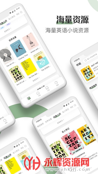 英语阅读看书,提供海量英语书籍及内容资源,你想看的我全有!英语看书是一款免费的学习英语的小a英语阅读神器,提供海量英语公版名着资源,让您快速扩充词汇量,提升英语阅读听力,英文阅读不再困难。无论你是学生还是白领,英语看书都能让你轻松高效的学习英语,摆脱死记单词,摆脱硬背语法,让学习英语变得简单有趣,突破听力与口语的障碍,从此爱上阅读!一点英语流利说,开启新概念英语阅读,学而思学而行,每日英语阅读器,轻轻松松百词斩,蒙哥英语原版阅读器,一步步轻松拓词学英语!学英语必备