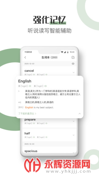 随时标记收藏生词,提供强化记忆工具,巩固提升单词理解,每日英语听力和阅读来记单词so easy!