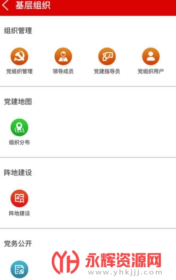 学习培训:资讯学习专区、党员培训专区、党建圈学习培训交流专区、学习培训大数据考核。随时学习,随地培训