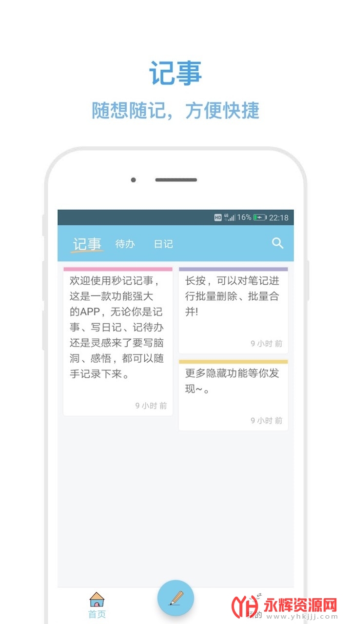 日记、记事、笔记、便签、备忘录、清单都能满足你。内含缤纷色彩可供选择分类。无论你是记账、记事、写日记,还是灵感来了要写脑洞、感悟,都可以随手记录下来。2秒记记事 - 多彩简易便签日记记事本,简单好用不占内存的便签型日记记事本。