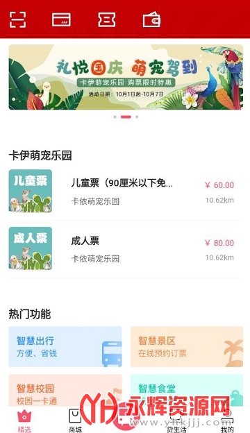 e行无忧主要服务内容涵盖餐饮美食、休闲娱乐、金融业务、公共代缴、公益活动等板块。
