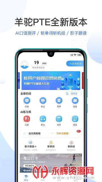 羊驼pte app具有独家高分技巧,听说读写全面提分。