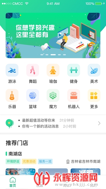 比如游泳、美术、乐器还有瑜伽等课程类型,汇集了多种课程类型;