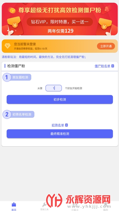 微信无打扰清粉app是一款十分专业的僵尸粉清除软件,使用这款软件可以一键扫描出你微信中的僵尸粉,并且一键进行清理。有需要的朋友们可以来永辉资源网下载使用哦!