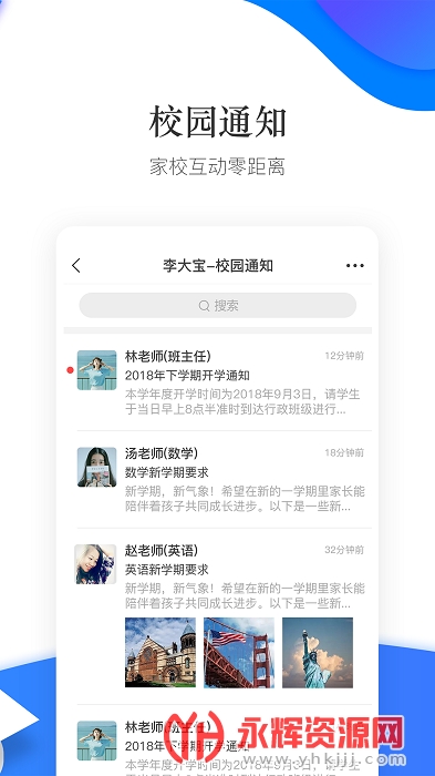 通知管理:校园通知管理和发布,重要通知及时送达家长;