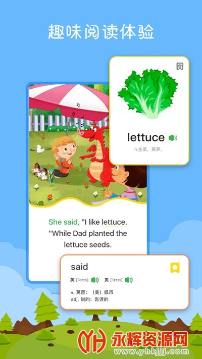 以绘本+个性化测评+实时学情分析反馈+个性化推荐,致力于为每一个学生提供个性化、智能化的阅读体验,听、说、读、测全方位激发学习兴趣。