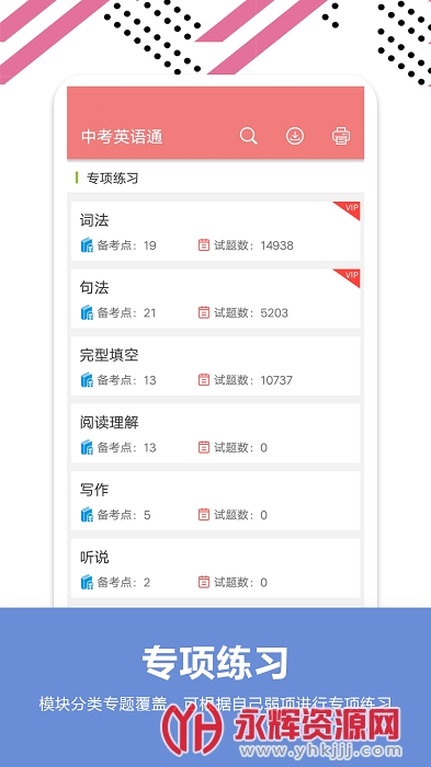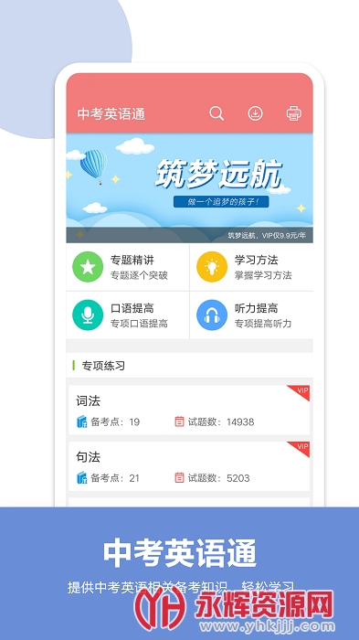 中考英语通app专为广大初中生打造,是一款非常好用的掌上英语学习软件,软件上有着丰富的英语学习知识,包含了语法、句法和完型填空等等,各种知识内容应有尽有,可以满足用户们的各种需求,帮助大家轻松的学习,掌握更多的知识点,提高学习成绩!感兴趣的朋友们就来下载体验吧!