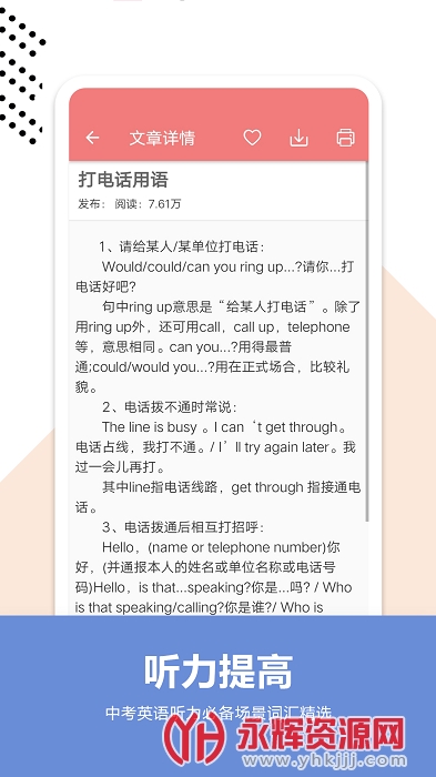 专题精讲、听力提高、学习方法、口语提高、课外阅读等文章不断为你的中考备考加分。