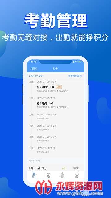 上班打卡排名奖分、晚下班排名奖分,新增考勤打卡的积分明细;修正加班时长计算(按班次设置自动计算)新增假期余额(允许加班时长转换为假期或加班费)数据统计更加自动化,新增考勤月报表查看明细,自动生成排班表,功能实现考勤自动化。